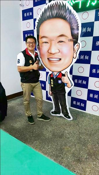 中正區的張淵翔,也在總部推出Q版大頭看板,相當討喜,張淵翔笑說,能讓鄉親擁有一抹亮眼的微笑,就是他為基隆努力的初衷。