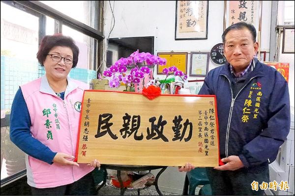 「勤政親民」,全市六百廿五個里新當選里長,最近陸續收到由即將卸任市長胡志強署名「恭賀」的匾額,不少里長質疑「第一屆市長署名送第二屆里長匾額」,未來四年這個匾額該掛那?