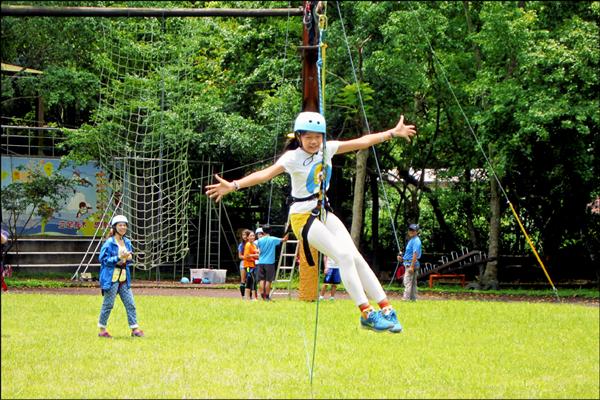 學校操場竟可高空探索!新北市有木國小積極推廣特色課程,操場上搭建了四座十一公尺高的電線桿,小朋友們可體驗吊鋼索滑行的刺激感,另外還有攀岩場、木工房等設施,宛如大型遊樂場,既有趣又能培養肢體協調,獲教育部評選為全國特色遊學學校。