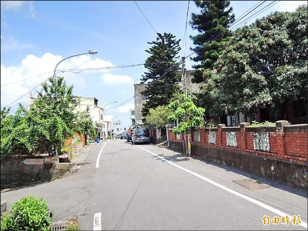 銅鑼鄉福興村社區發展協會推動文史老街再造,第一期以改造復興路為主,圖右圍牆為老銅鑼分駐所。(記者張勳騰攝)
