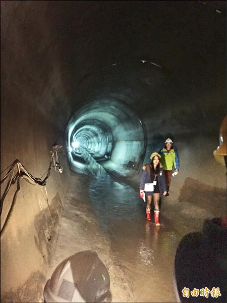直擊!第一原水路內部寬達四米。(記者游蓓茹攝)