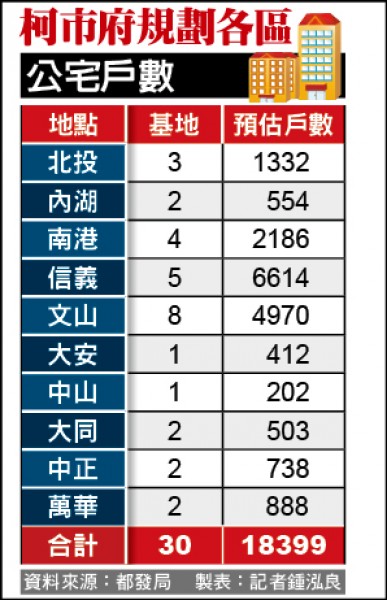 柯市府規劃各區公宅戶數