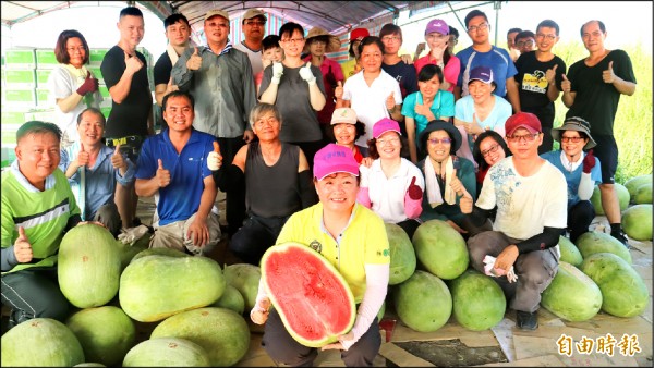 壽豐農會推出自有品牌果豔西瓜,昨舉行開園採收。(記者王錦義攝)