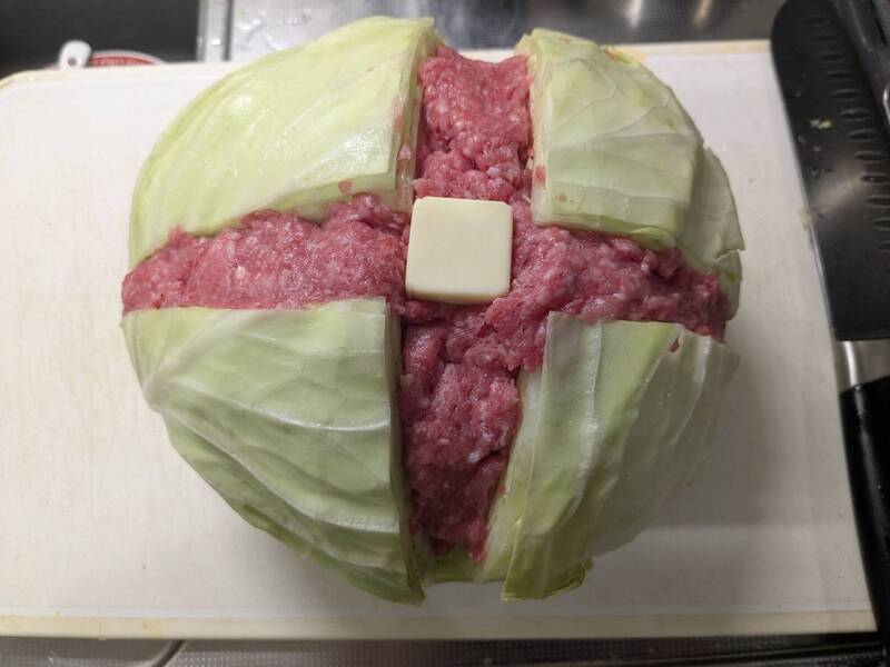社群平台「X」(前Twitter)名為「ショコ」的日本網友在上月18日發文透露,他幸運買到一顆售價僅88日圓(約新台幣18元)的巨大高麗菜,於是決定把它製作一份充滿革命性又豐盛的庶民料理。從貼文顯示,他先是將一整顆高麗菜切成十字型切口,再把肉與奶油塞進切口,接著把它整個拿進電鍋清燉,等到煮熟後,再慢慢切片享用。