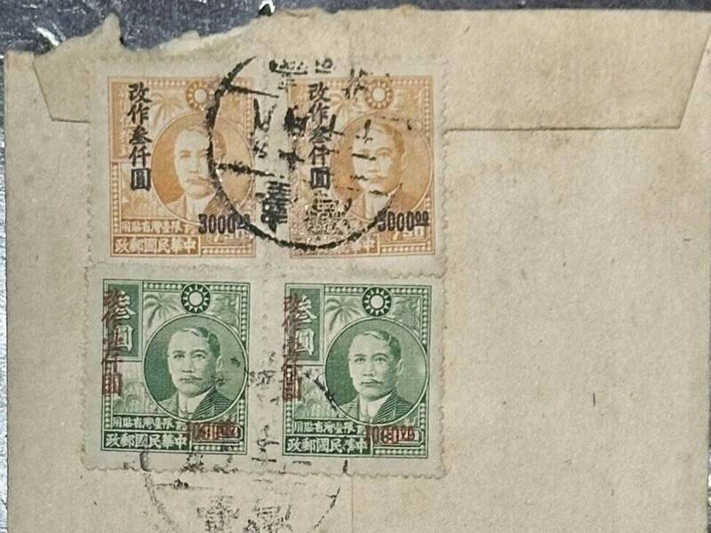 梁志忠說,1949年因物價指數崩盤,通貨膨脹失控,買1顆雞蛋要5000元,同年6月15日政府實施新台幣1元換舊台幣4萬元,這封信便是在當時的過渡時期10月份,從台北市寄到台中縣南投區,信封貼著2張3000元,2張1000元的舊郵票,總共8000元,讓人感到不可思議。
