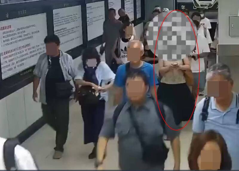 中國一名女子(紅圈處)在長裙裡藏匿229條活魚。(擷取自中國海關總署微信公眾號)