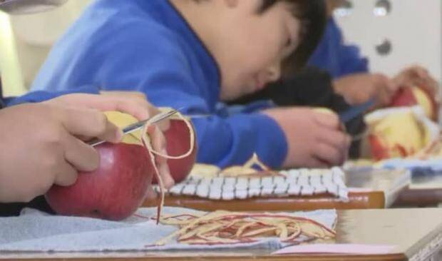 《名古屋新聞》報導,「削蘋果皮大賽」為豐橋市富士見小學的傳統活動,從1984年創校以來不曾中斷,目的是讓學生學會如何正確使用刀具,及培養他們的專注力。今年約有250位學生參加比賽,看誰能夠在40分鐘內削出最長的蘋果皮。