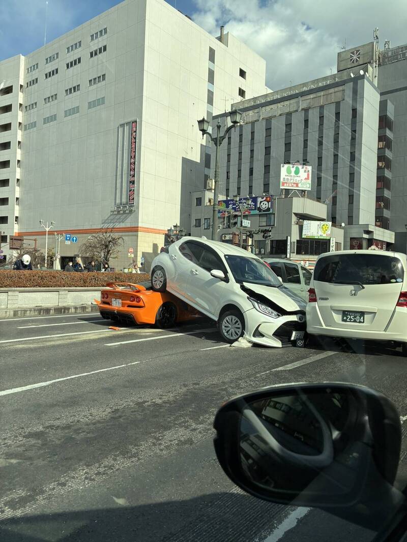 日本栃木縣宇都宮車站附近路口,30日中午12時30分許有男子酒後開著蓮花(Lotus)跑車上路,一口氣撞上前面4輛停等紅燈的車子,網友們看到現場離譜的車輛堆疊照片後驚呼連連。