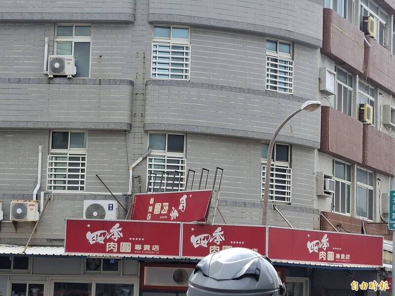 由於陣風8級以上,市區商家招牌也被吹落。(記者劉禹慶攝)