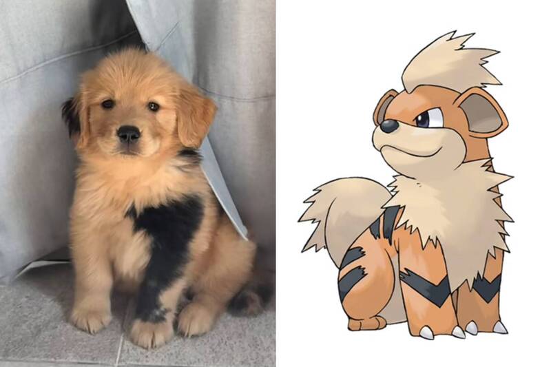 有不少網友指出,「伯納多」的外型跟寶可夢「卡蒂狗」很像。(圖擷取自@berniethegoldenr TikTok,本報合成)