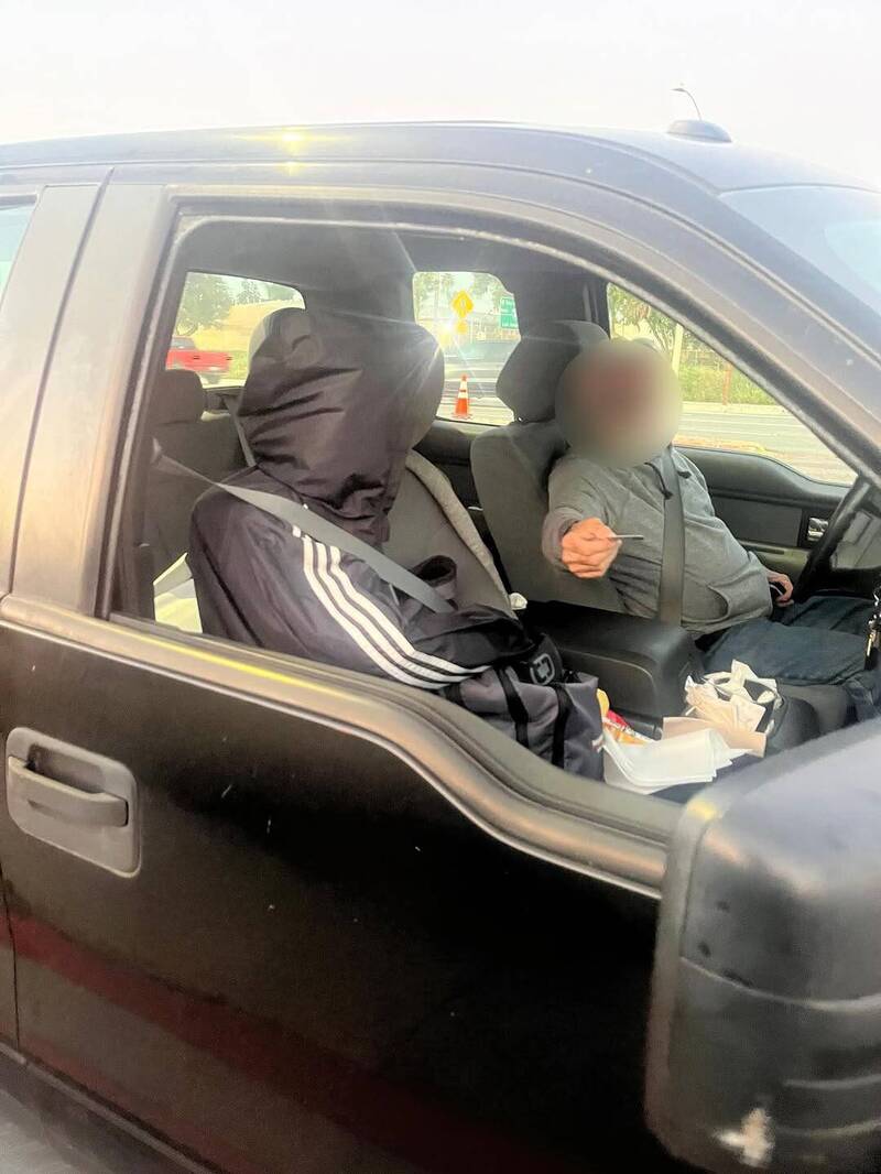 從其他角度能看到,車內副駕駛座的「乘客」其實是外套披在座椅上。(圖擷自「CHP Baldwin Park」IG)
