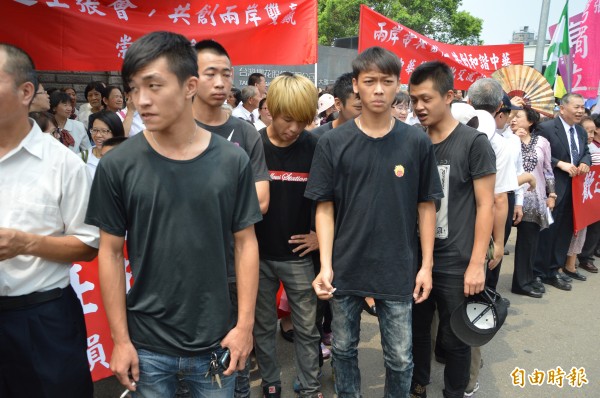 張志軍造訪台中市惠明學校,該校周圍也成為各方表達意見的較勁之處,最突兀的是,一群嚼著檳榔或抽菸,或身上刺青的黑衣人,也態度散漫群聚現場,還宣稱自己是賣麵、賣魚或賣菜的人,之後在指揮下,拉起署名為「台灣海峽兩岸鴿友交流協會」與「中華四海同心協會」等歡迎的紅布條,不過,卻連布條都拉不好,態度顯得不認真積極,網友諷刺說,宛如「葬儀社」。