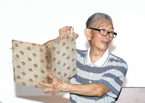 政治受難者許貴標先生展示難友所製克難書包(記者王文麟攝)