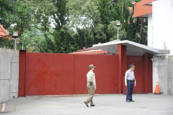 中興官邸三號門上午傳出有人駕車衝撞,幸好只是虛驚一場。(記者劉信德攝)