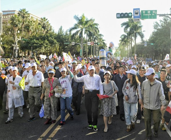 柯文哲一家人帶領白色大隊向前進。(記者陳志曲攝)