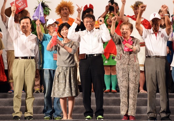 走在遊行最後面的柯文哲說,沿路看到繽紛的色彩、無數的創意及所有朋友的笑容,看到大家改變了台灣的政治文化;請各位朋友看周邊的朋友,大家下午在燦爛陽光底下踏著新鮮土地,你我在這座城市安身命,你我都一樣沒有不同,過去意識形態對立,人與人之間豎起隱形而冰冷的高牆,這道高牆把大家分成統獨、藍綠、國民及皇民,大家互相叫罵、對立,折磨著我們的親情愛情和友情。