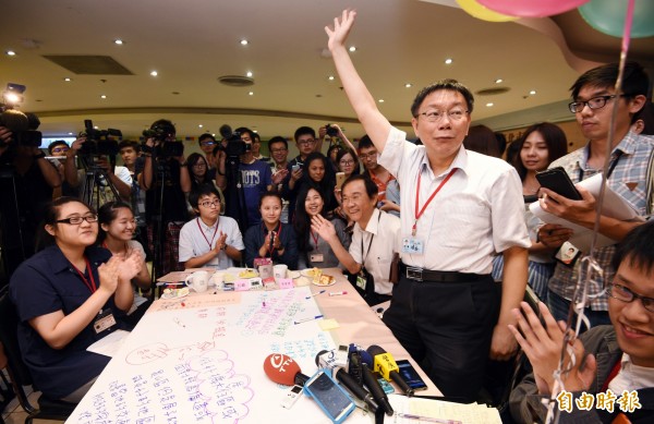 面對學生所談論的租屋理想,柯文哲笑答,「你已經20歲了,要開始面對殘酷人生」。(記者羅沛德攝)