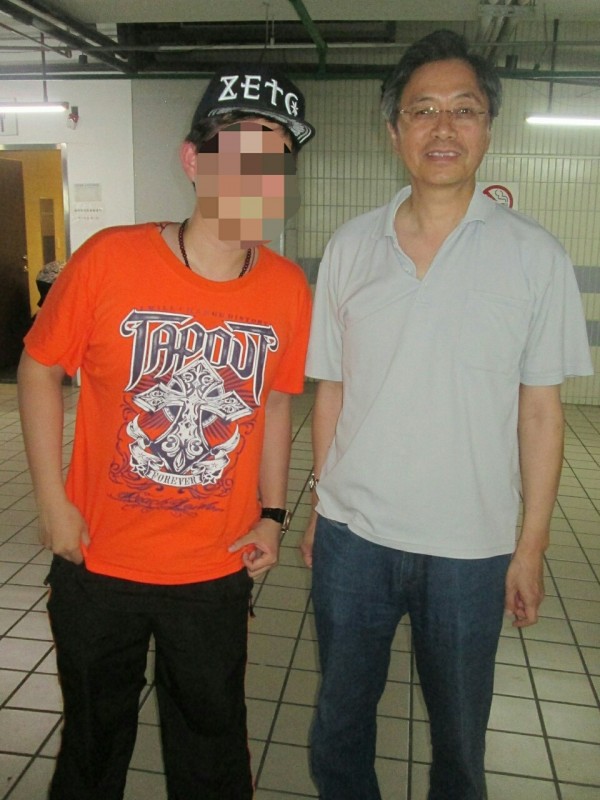 本月初有網友在PTT發文,說自己在台北火車站巧遇「野生」行政院長張善政,並附上合照。(圖擷取自PTT)