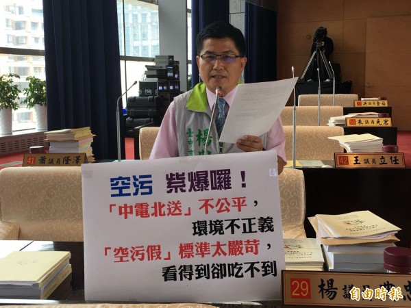 市議員楊典忠怒批「中電北送」不公平,環境不正義。(記者黃鐘山攝)