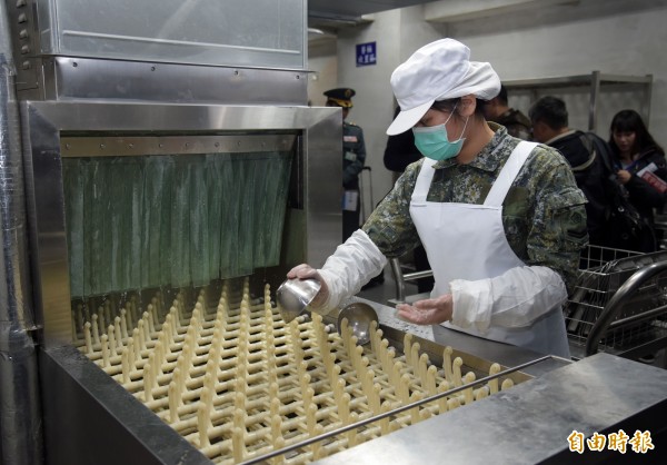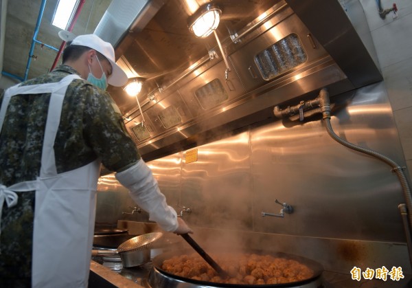 另外,花蓮復興北營區為增進官兵用餐衛生與品質,因此設置每小時可清洗三百個餐盤的履帶式三槽洗碗機,清洗完畢後立即消毒,讓官兵不必像以往一樣,用完餐後得自己清洗餐盤。另外,伙房也打造水幕式油煙系統,藉油煙碰撞將油滴分離,達到清淨空氣目的,也可確保炊爨時更加有效率、衛生。