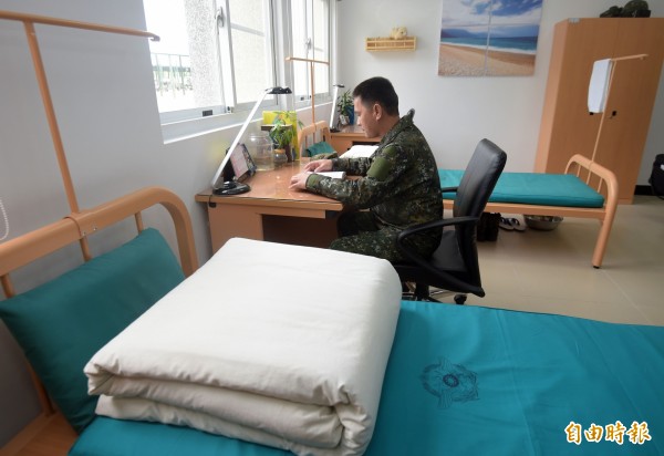 陸軍花東防衛指揮部復興北營區配合募兵制營區整體規劃,志願役寢室方面滿足「一桌、一床、一櫃」使用空間。(記者黃耀徵攝)