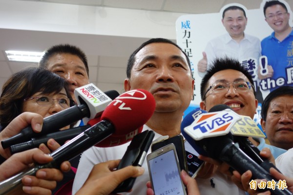 國民黨新北市長參選人侯友宜今早到三重區舉辦都更政策說明會。(記者葉冠妤攝)