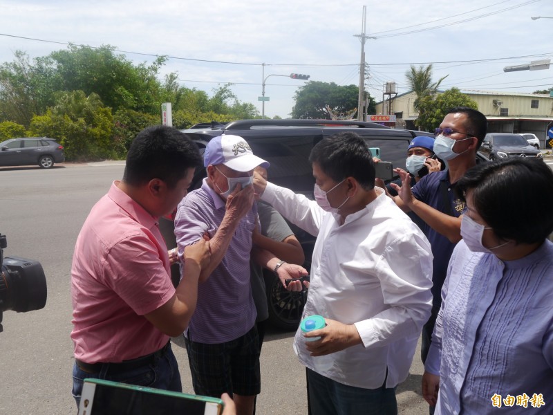 顏清標(右)安慰父親顏懷(中)。(記者張軒哲攝)