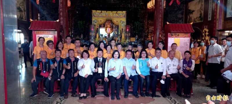 蔡英文總統與嘉義市天后宮志工團合影。(記者丁偉杰攝)