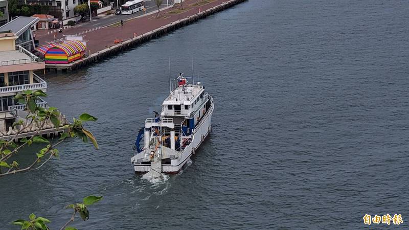 寶拉麗絲號在海巡安檢站短暫停靠後,再駛往高科大旗津碼頭,預計下午2點半抵達。