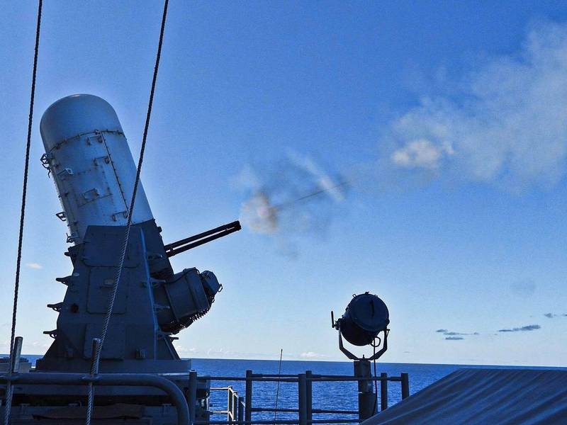 艦艇模擬敵軍飛彈來襲,方陣快砲實施接戰,確保艦艇安全。(圖:取自中華民國海軍艦隊臉書專頁)