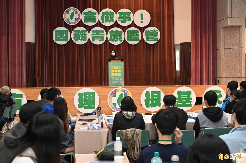 蔡英文總統今天以黨主席身分出席民進黨「2022國務青旗艦營」結業式。(記者田裕華攝)