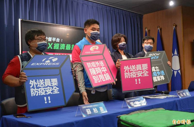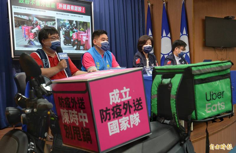 國民黨今與全國外送員產業工會共同召開記者會,反映疫情下外送員面臨的問題。國民黨文傳會主委王育敏表示,在疫情高峰下,居隔人數不斷上升,外送員送餐是負擔照顧的角色,政府要正視防疫安全,外送員希望比照去年防疫措施,不要讓外送員上樓送餐,並暫停使用現金支付。