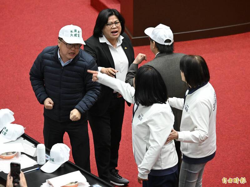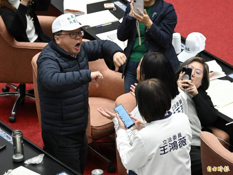 立法院院會今(21)因新黨游智彬進入議場記者席,國民黨立委與民進黨立委發生口角。(記者陳逸寬攝)