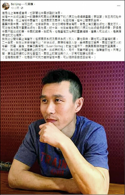 八旗文化總編輯「富察」李延賀。(圖擷取自臉書)