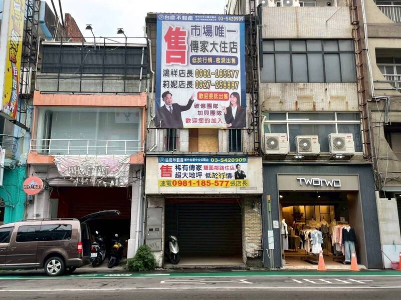 新竹市舊城區店面無人租,到處可見店面出租出售,市議員曾資程批市府觀光政策不彰,且浪費公帑如流水。(曾資程提供)