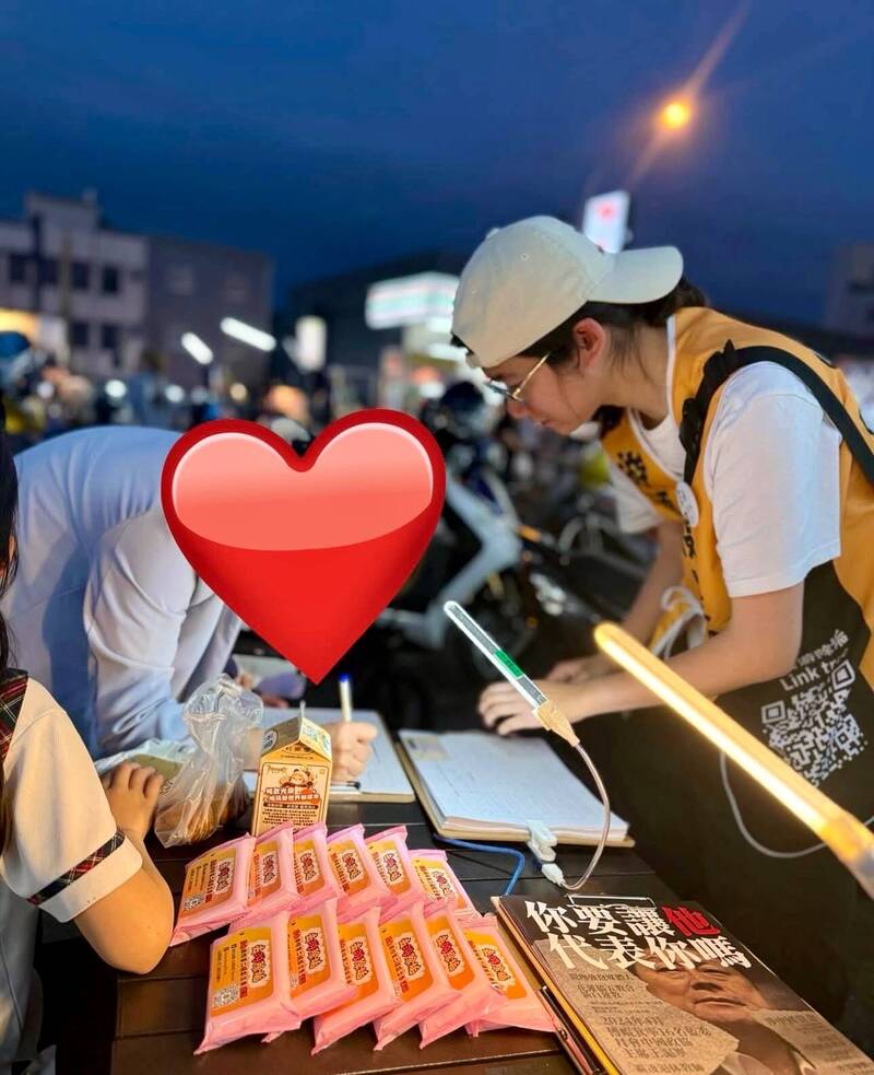 罷免游顥領銜人林敬桐(右)在各夜市擺攤,讓民眾來簽連署書。1日因幽靈連署遭南投檢方傳喚,當晚已無保請回。(「去游除垢」罷團提供)