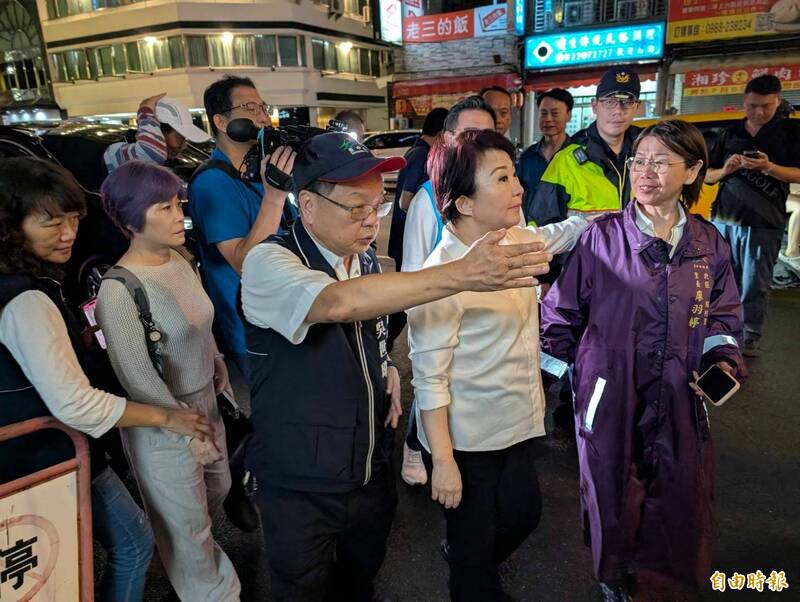 台中市長盧秀燕視察淹水民宅區域,慰問民眾。(記者蔡淑媛攝)