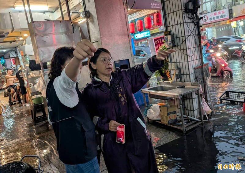台中市長盧秀燕視察淹水民宅區域。(記者蔡淑媛攝)