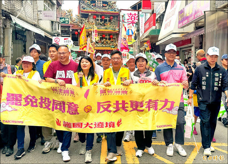 公民團體「護國大遶境」14日行腳桃園市中壢區掃街,為同意罷免催票。(資料照)
