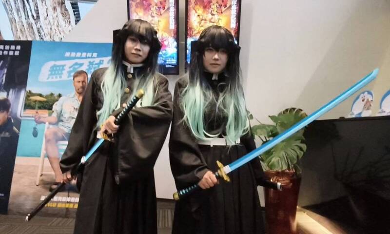 日本動漫《劇場版「鬼滅之刃」無限城篇第1章:猗窩座再襲》在金門放映,來自中國泉州的粉絲特地COSPLAY。(讀者提供)
