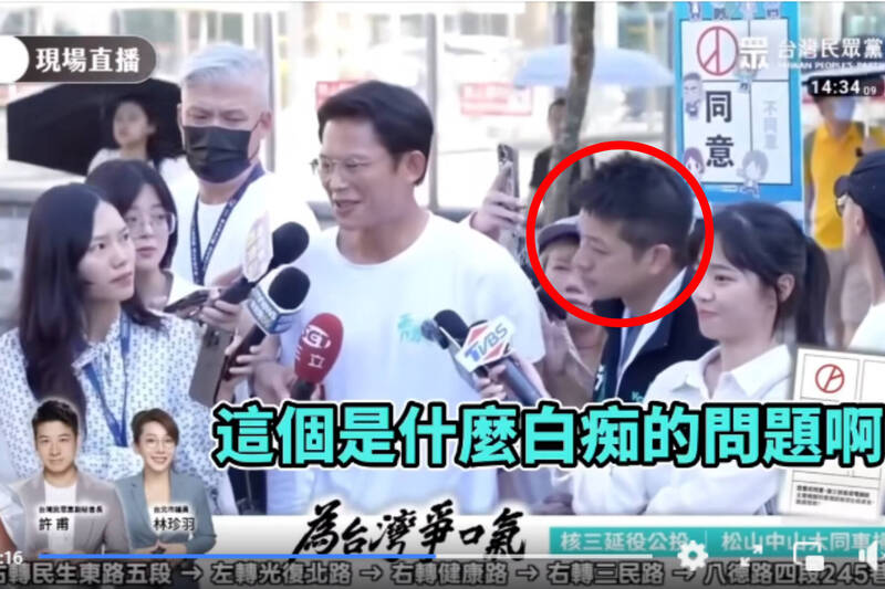 女記者吳洛瑩被黃國昌嗆「這個是什麼白癡的問題啊」時,民眾黨副秘書長許甫(紅圈處)也在現場。(擷取自臉書)