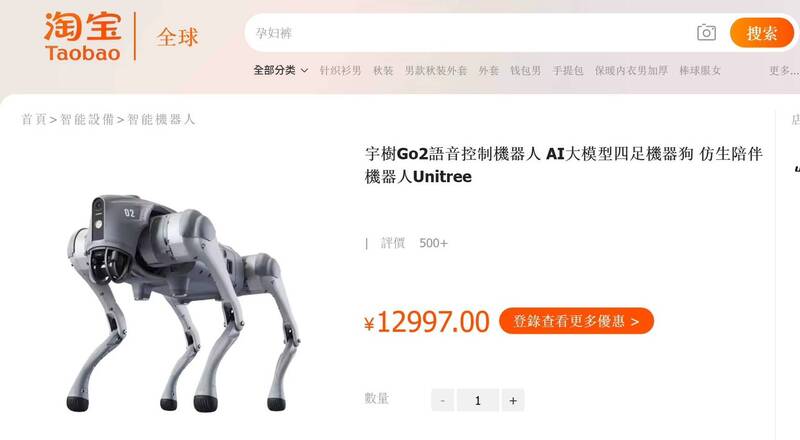 機器狗在淘寶上約為1.3萬人民幣。(取自網路)