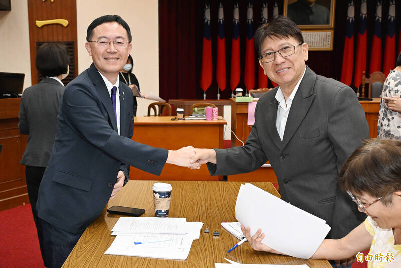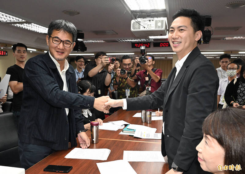 立法院衛環委員會召委選舉,民進黨立委劉建國(左)、國民黨立委廖偉翔(右)出任。(記者廖振輝攝)