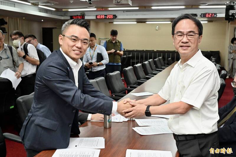 立法院財政委員會召委選舉,民進黨立委李坤城(左)、國民黨立委林思銘(右)出任。(記者廖振輝攝)