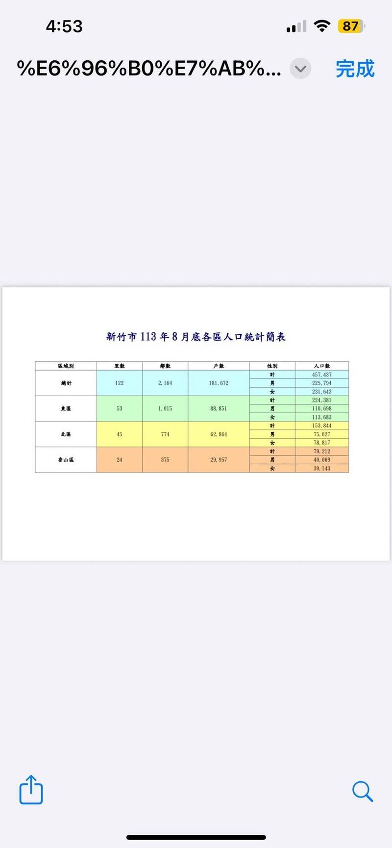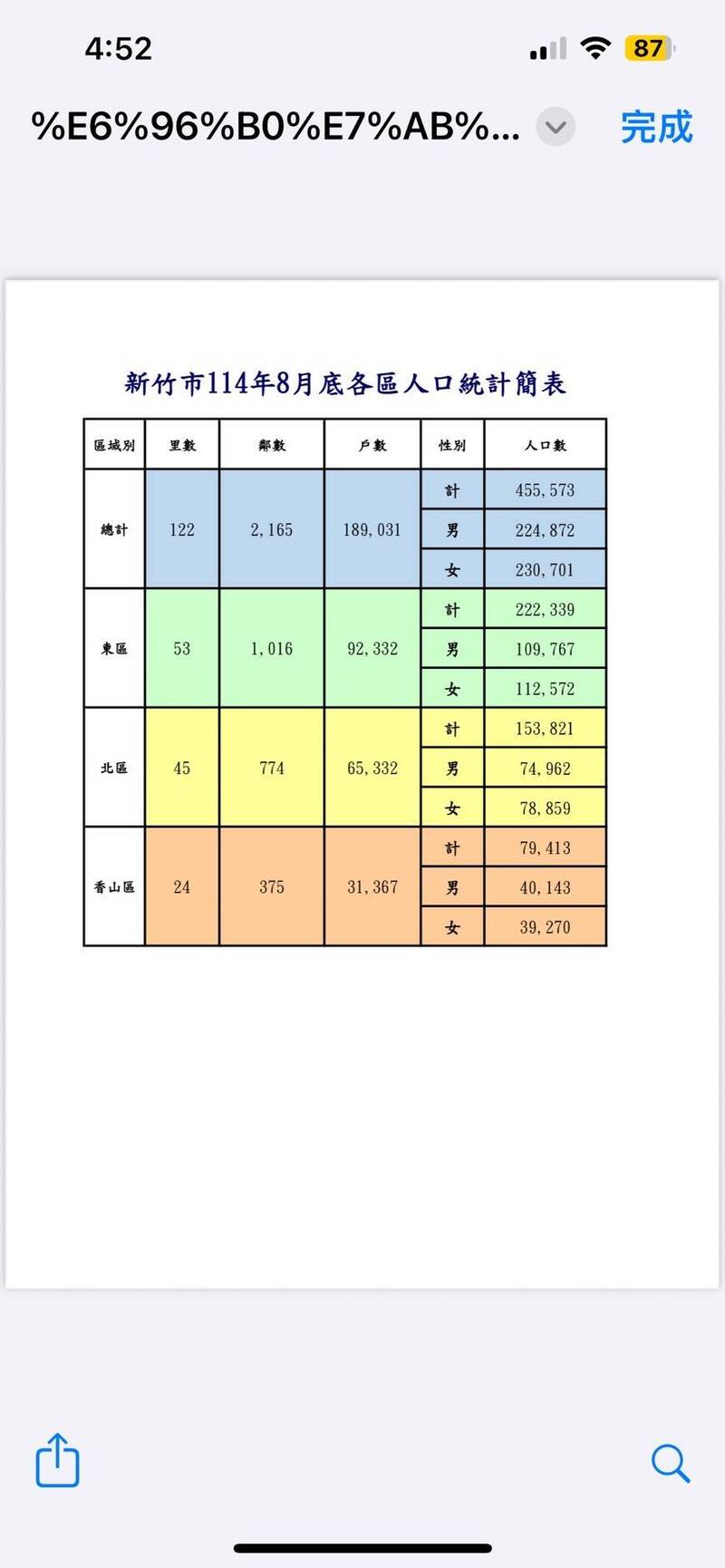 新竹市人口數今年8月比去年同期少1864人。(記者洪美秀翻攝)