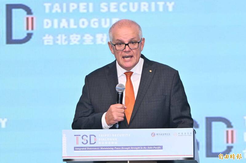澳洲前總理莫里森(Scott Morrison)8日應邀在2025台北安全對話演說。(記者田裕華攝)
