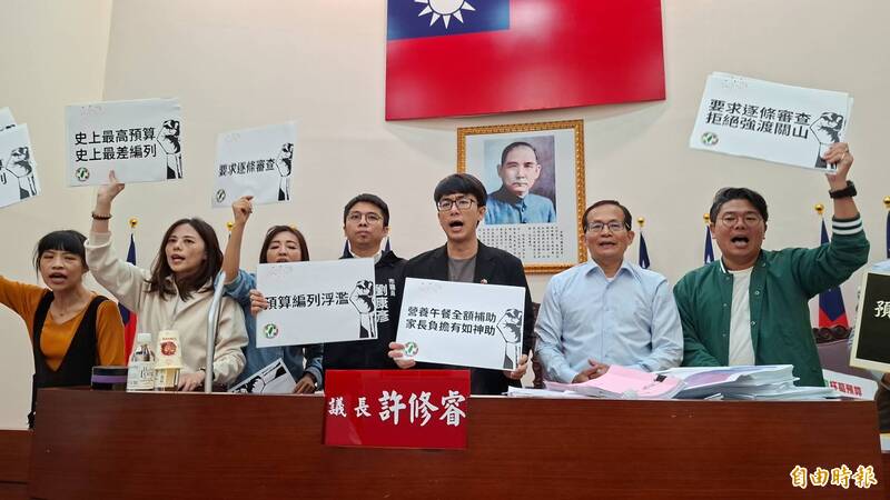 綠營議員曾資程則說,議會違反議事規則第28條及29條,未處理議員所提的刪減動議等臨時動議排除掉,因黨團發現市府明年度的總預算虛編浮編亂編情況明顯,要求議會應遵守程序正義,照議事規則審查,卻不得其門,看到藍白議員夾著多數暴力輾壓議會,黨團後續將循正當管道,請內政部函釋這樣的草率粗暴的總預算審查方式是否符合相關程序,如果不符合就應退回,讓議會重新審查明年度預算。