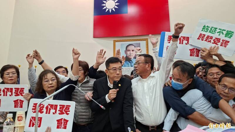 新竹市議會總預算在藍白未符合程序下強勢包裹統刪8千萬三讀通過,通過的現場一片混亂。(記者洪美秀攝)