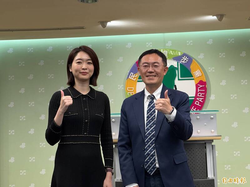 民進黨發言人李坤城(右)、韓瑩。(記者陳政宇攝)