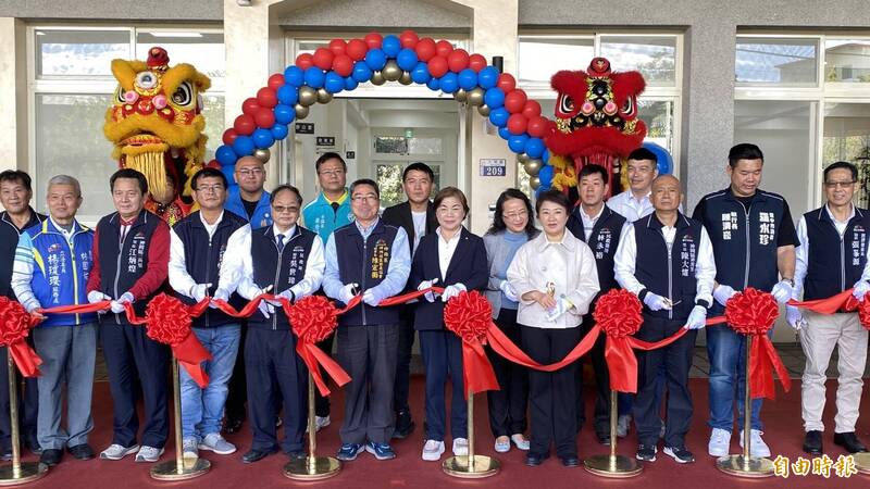 台中市長盧秀燕(右4)、楊瓊瓔(右5)今天參加台中市神岡區神洲里市民活動中心落成啟用典禮。(記者張軒哲攝)